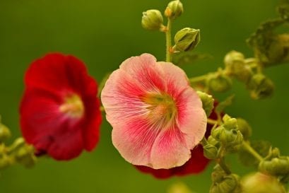The hollyhock flower (Alcea rosea) is a genus of approximately 60 species in the family Malvaceae. Hollyhocks are hardy biennials (take two years to bloom) and short-lived perennials. The blow-shaped flowers are from 7 to 15 cm wide, depending on…