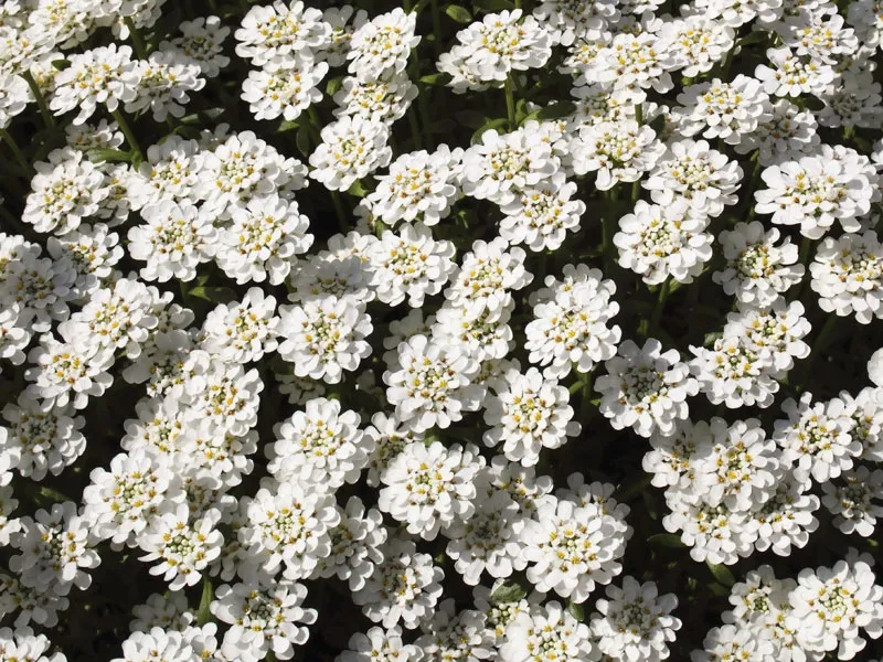 Candytuft is an evergreen shrub. Suitable for growing in hardiness zones of 4-8, with a bush-like appearance obscuring and taking much of the gardening space. Iberises are related to cabbage and broccoli and the flowers of this plant look similar to those of a carnation.